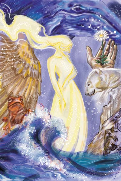 Так героиня нашего повествования дни и ночи напролёт носилась по планете, на миг соединяясь душой со всеми царствами природы: морями и минералами, растениями и насекомыми, животными и птицами. Она познавала наш мир таким необычным способом и уже назвала про себя нашу Землю «Планетой всеобщего счастья», потому что всюду ощущала радость бытия.